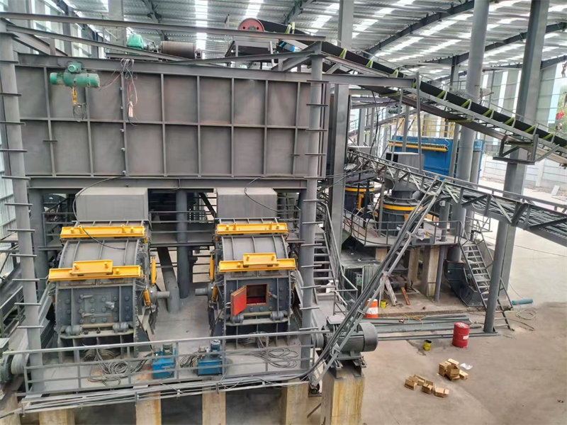 頭破采用1臺PE1200*1500顎式破碎機;二破采用2臺FKF系列反擊式破碎機、2臺FKL系列沖擊式制砂機、篩分設(shè)備采用4臺F3YK系列圓振動篩。